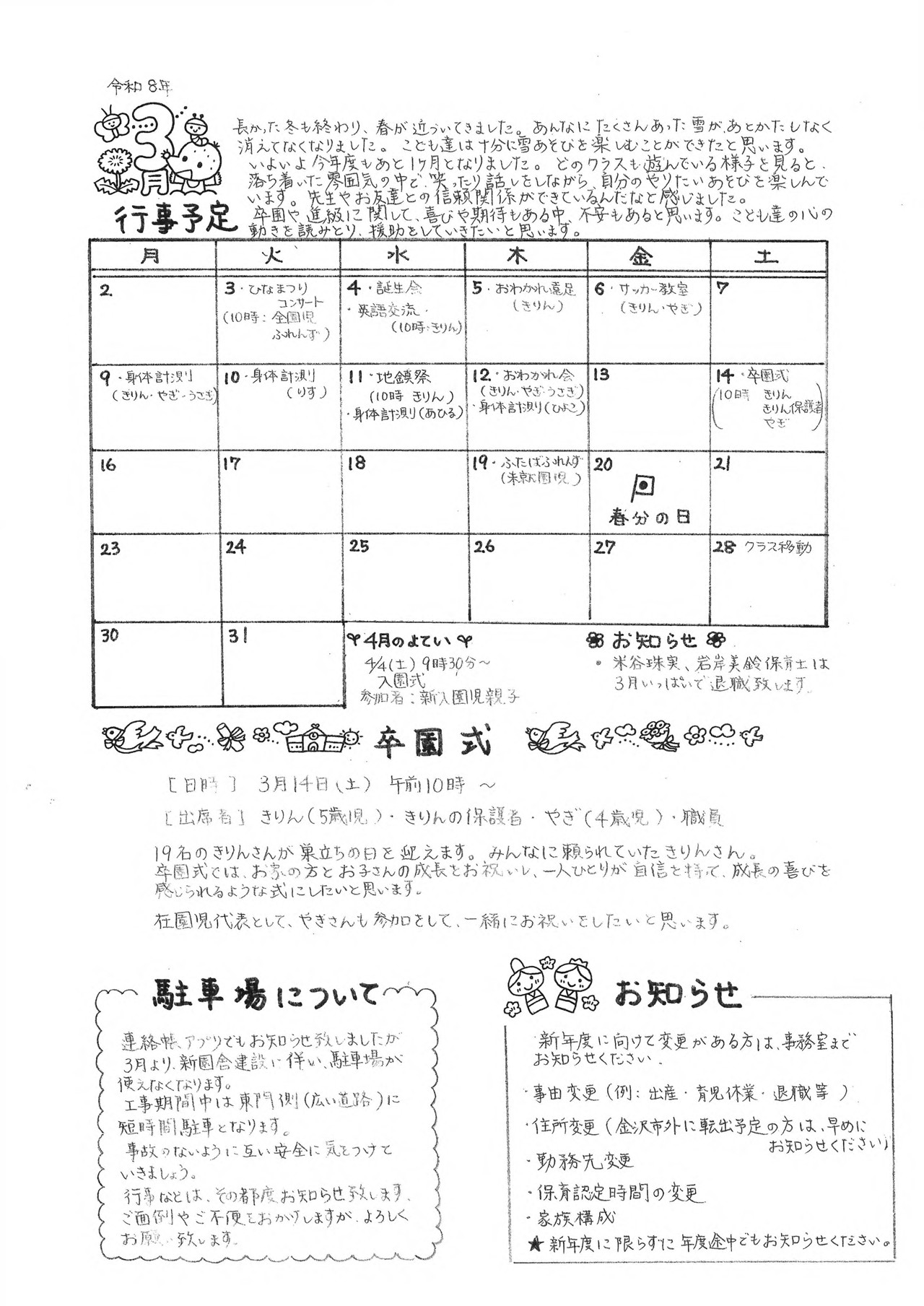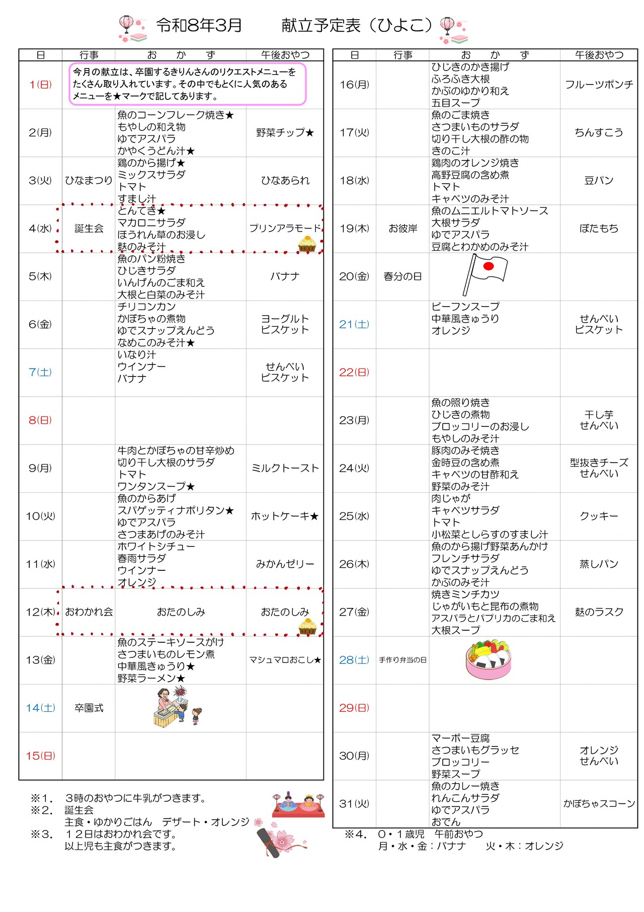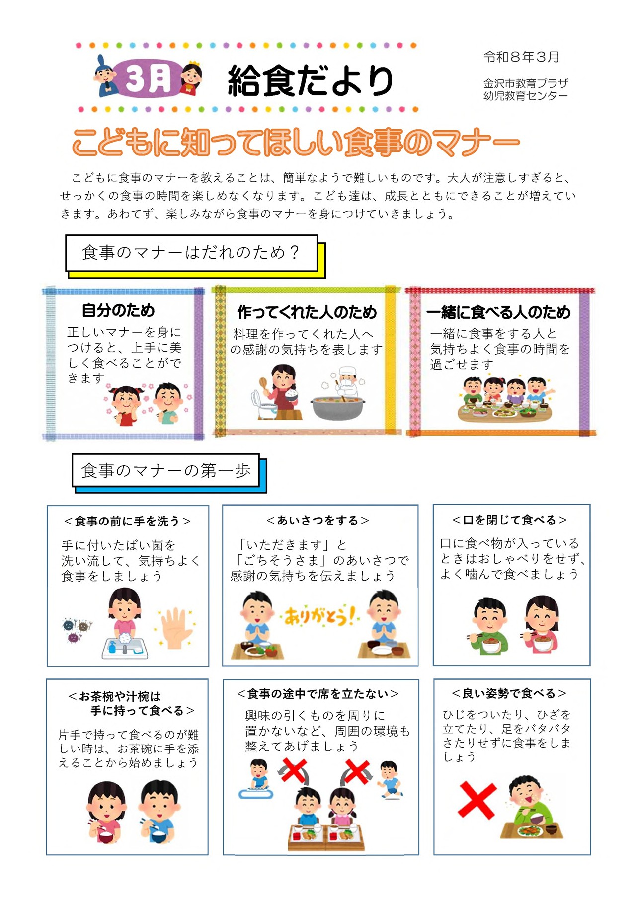 3月のおたより 園報・園だより ※タップでPDF表示 献立表 mogumogufutaba eatなう! おやつ クッキー 3月25日 献立 肉じゃが キャベツサラダ トマト 小松菜としらすのすまし汁 おやつ 型抜きチーズ せんべい 3月24日 献立 豚肉のみそ焼き 金時豆の含め煮 キャベツの甘酢和え 野菜のみそ汁 さらに読み込む... Instagram でフォロー 金沢市からのおたより ※タップでPDF表示